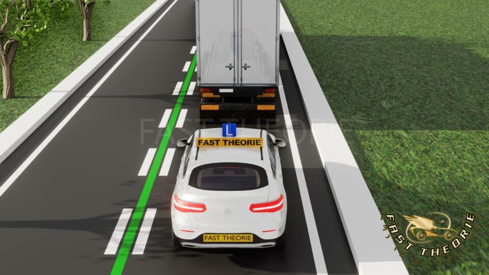 Je moet naar de rechter rijstrook. mag je deze doorgetrokkenstreep overschrijden?Hide Translation